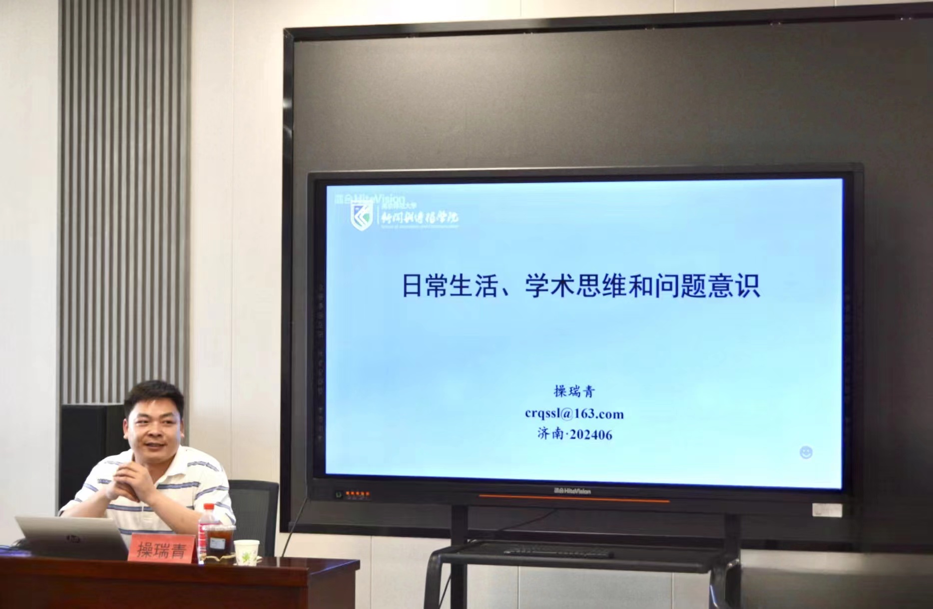 6月12日下午,由新闻与传媒学院和社会科学处联合主办的社科大讲坛在长清湖校区文浚楼518顺利举行。南京师范大学研究员、新闻系主任操瑞青担任主讲人,作题为“日常生活、学术思维和问题意识”的讲座。