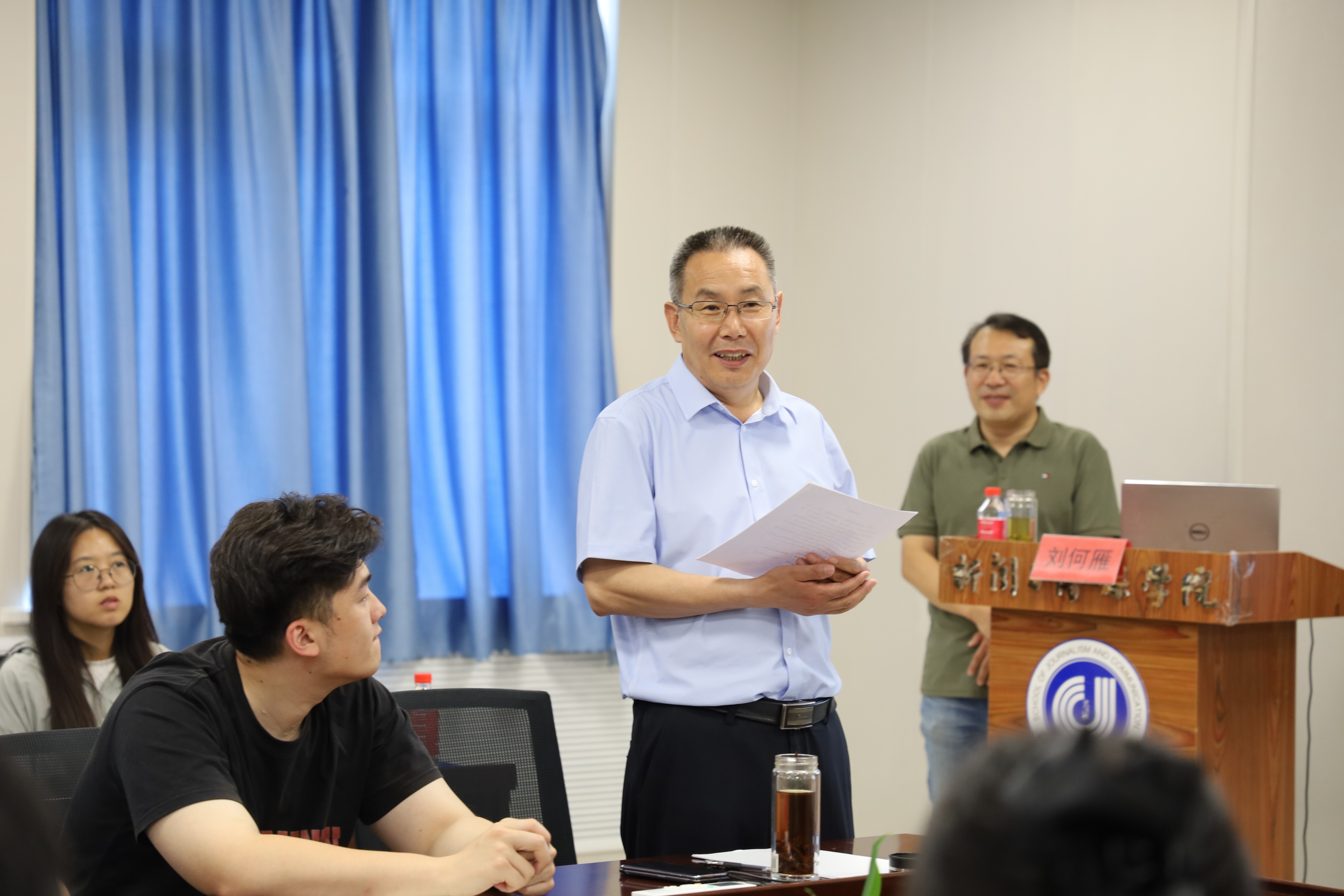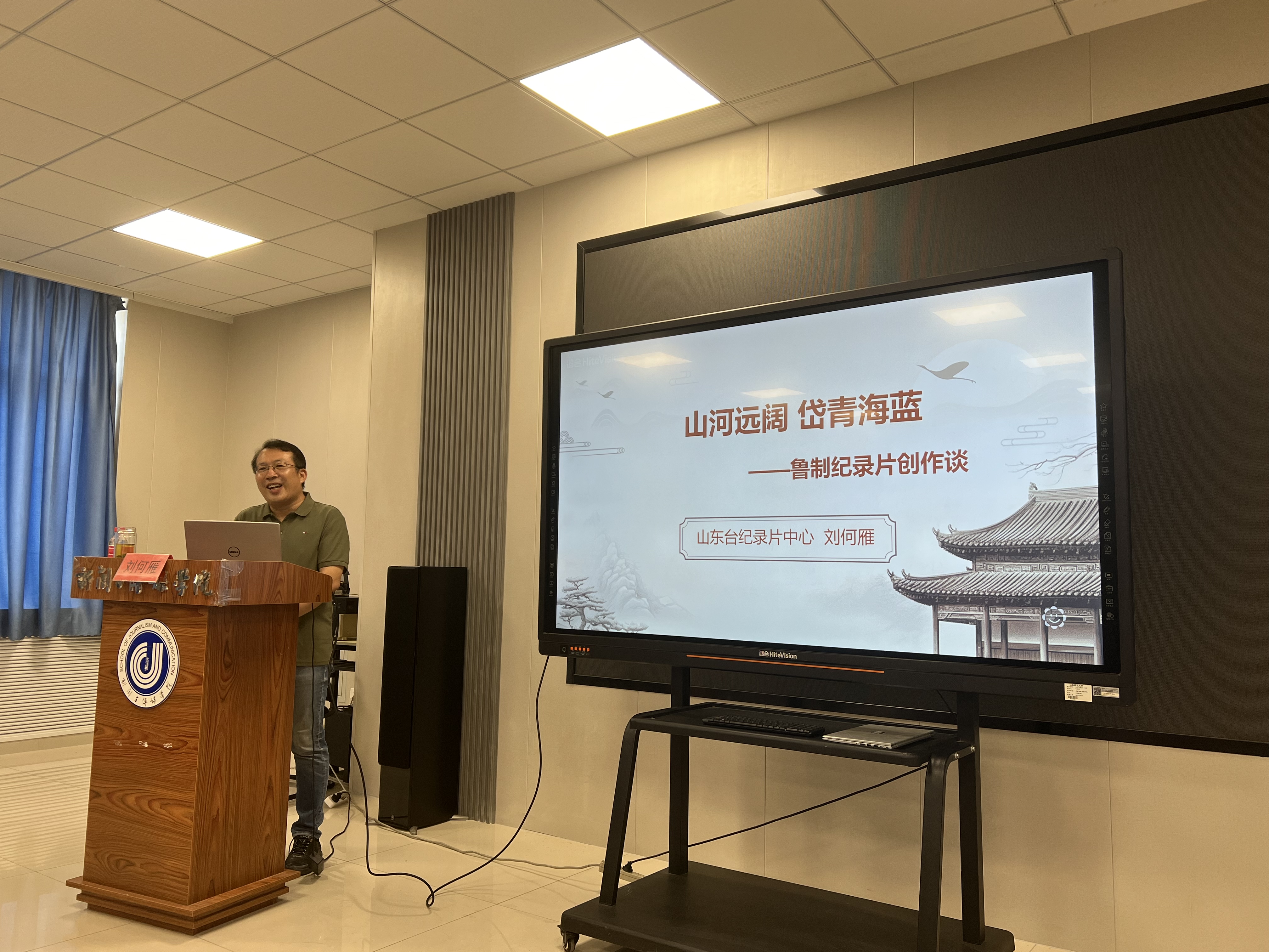 6月12日上午,山东广播电视台纪录片中心副主任刘何雁来我院作了“山河远阔 岱青海蓝——鲁制纪录片创作谈”报告,新闻与传媒学院教授李掖平、马池珠、王宏,学院部分研究生参加本次报告会,报告由影视传媒研究院院长马池珠教授主持。